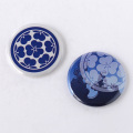 2種類のデザインから、お好きなバッジをお選びください。 ■長宗我部氏家紋「七つ片喰」白地に紺 ■「七つ片喰」と波 バッジの直径は32mm。 お得な2個セット(470円)もあります。