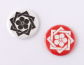 坂本龍馬の家紋「組み合わせ角に桔梗」をデザインした缶バッジです。